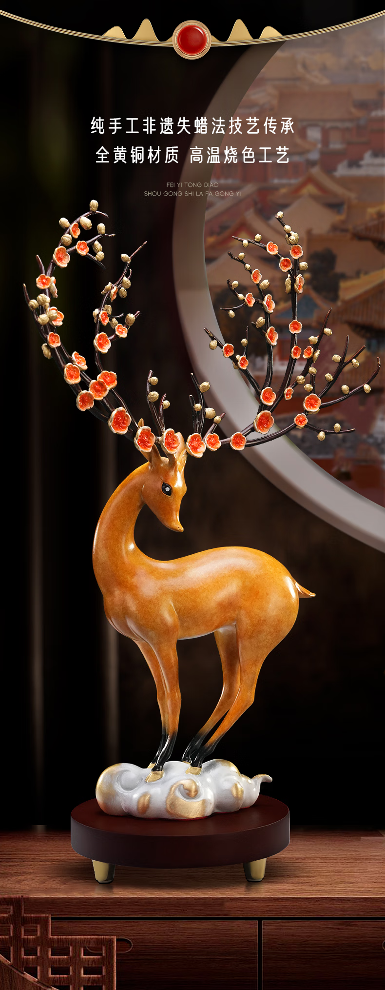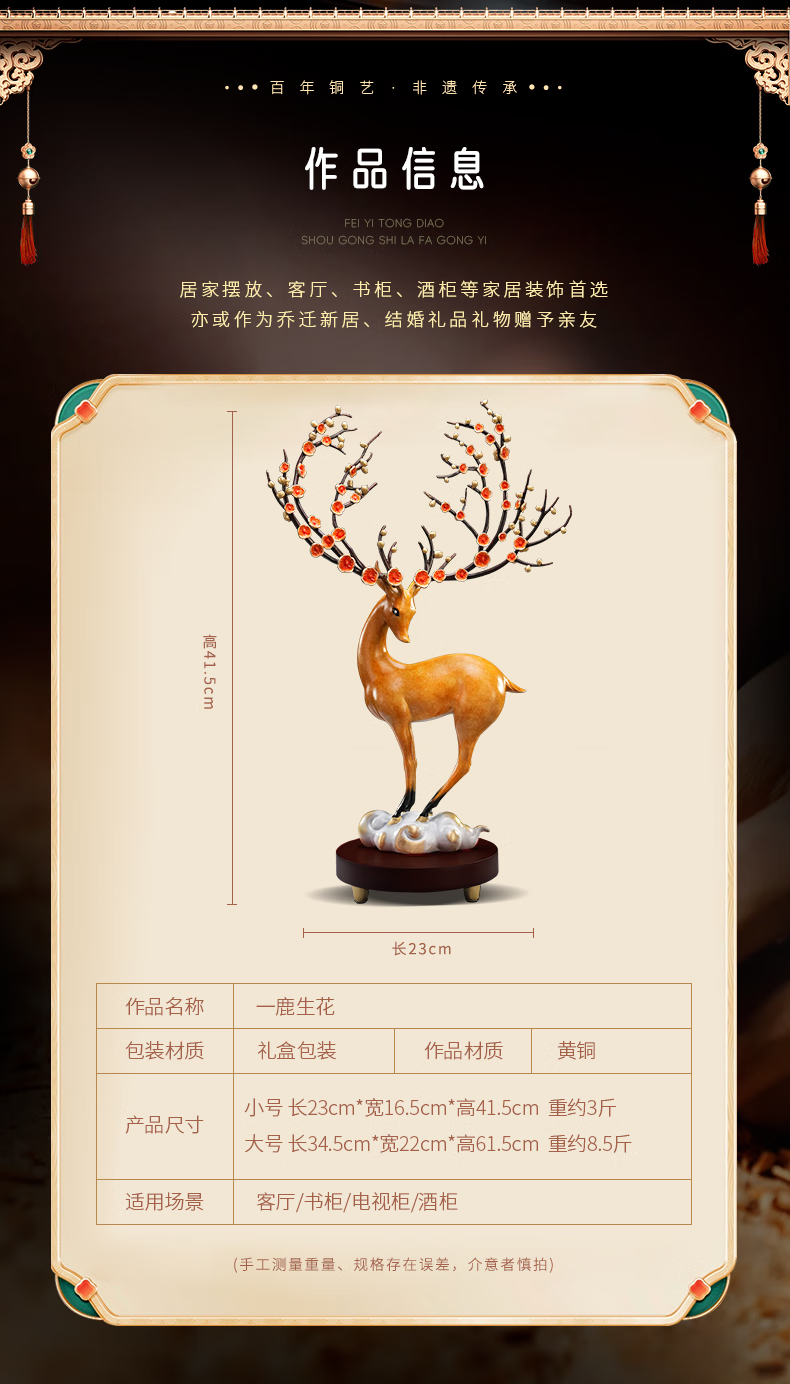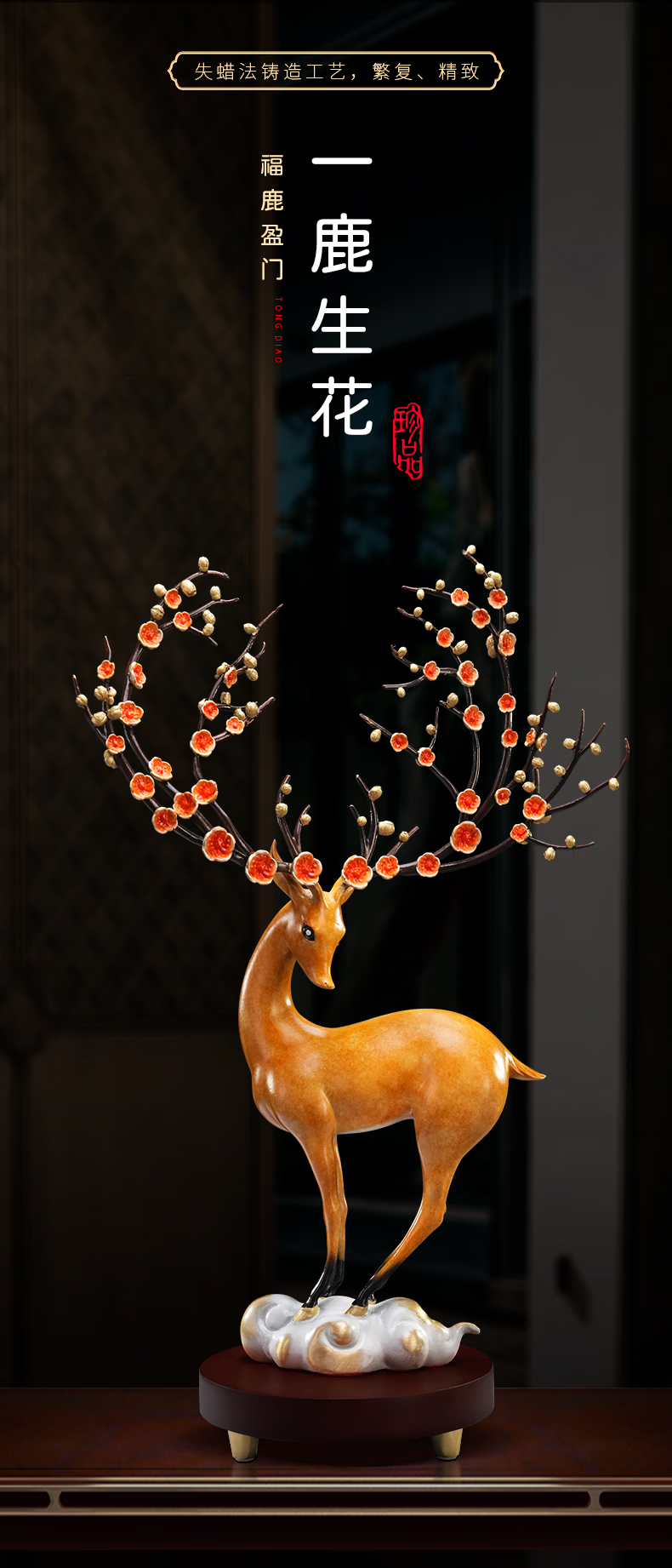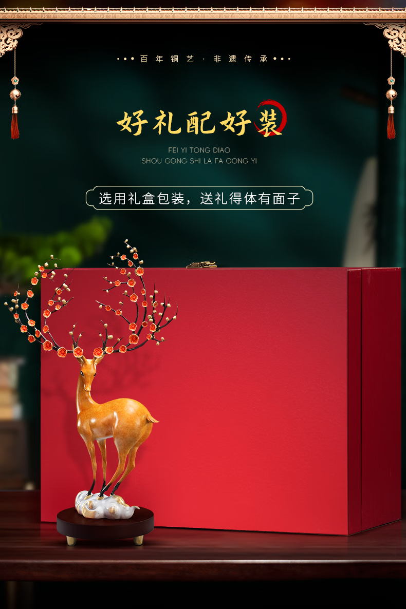 全铜梅花鹿摆件工艺品家居客厅酒柜办公室装饰品结婚礼物乔迁礼品 一路升华梅花鹿