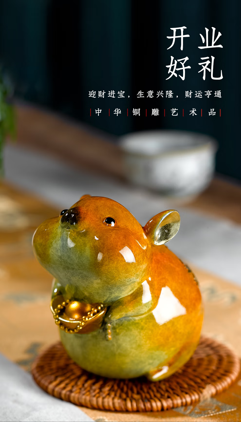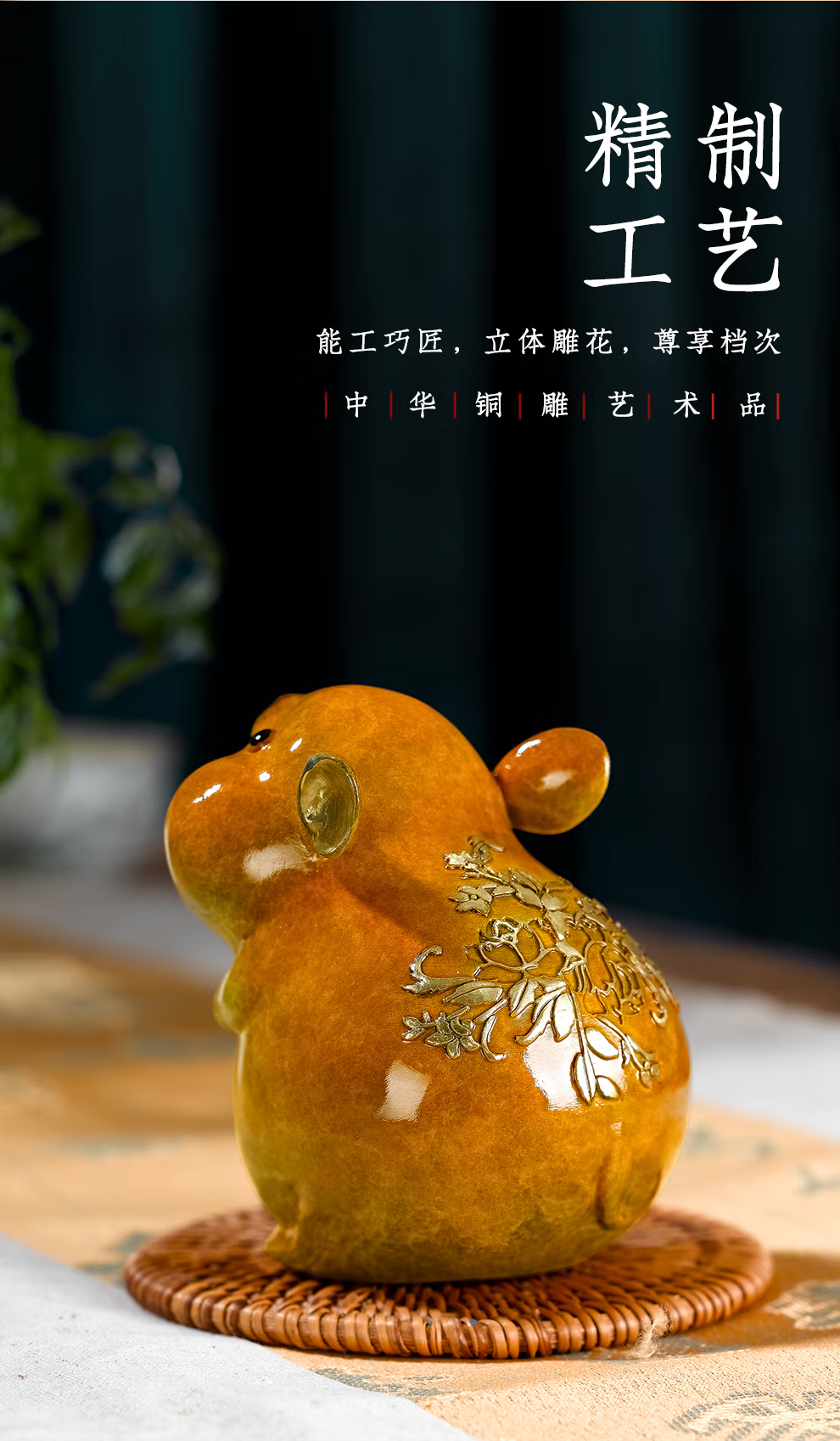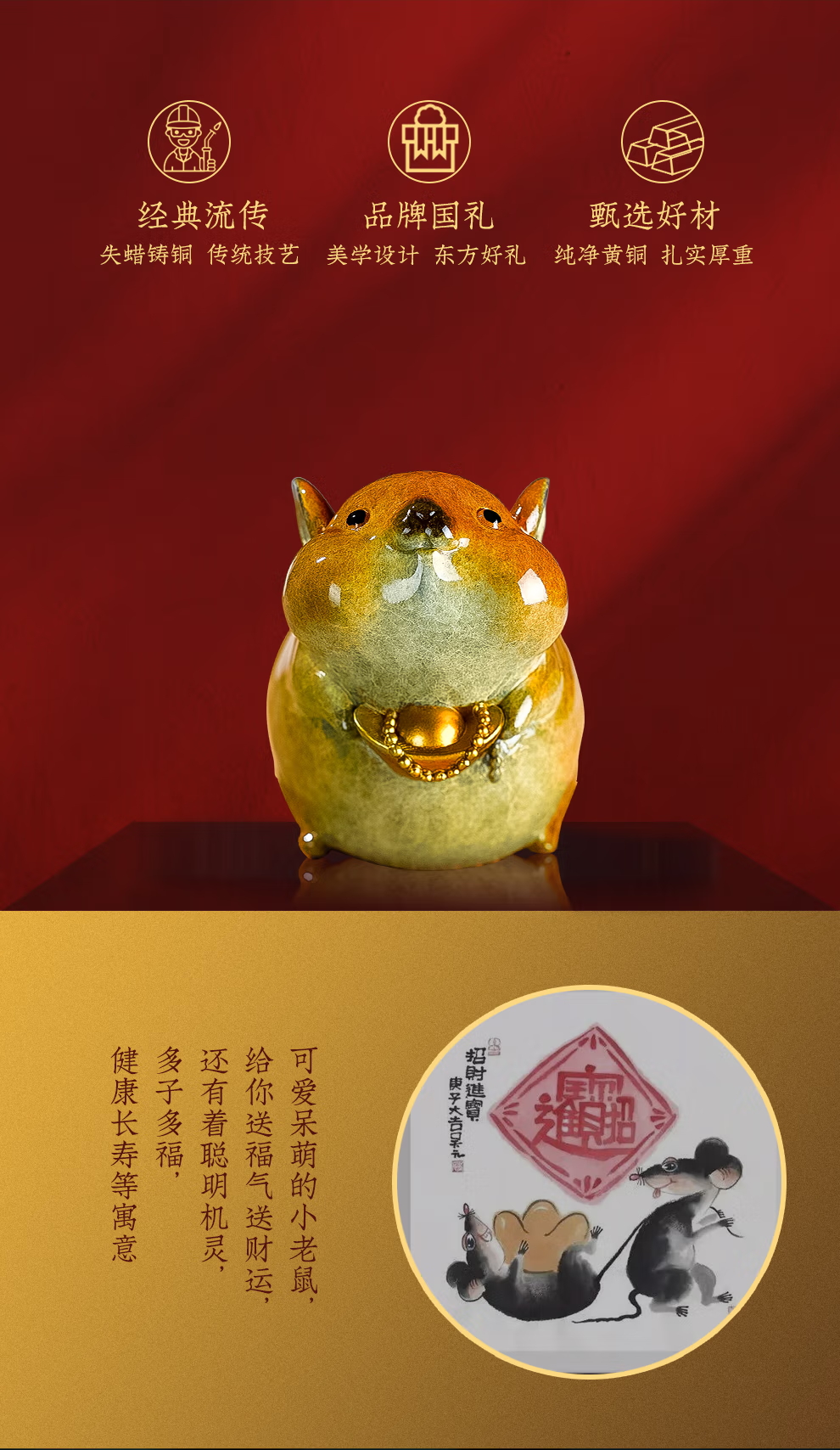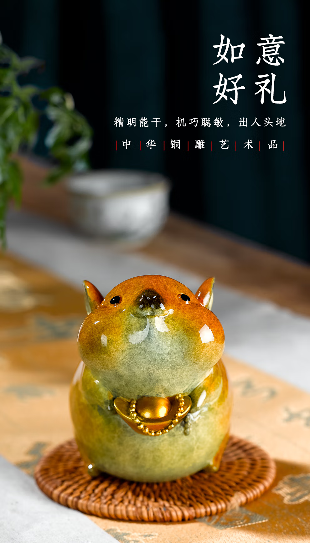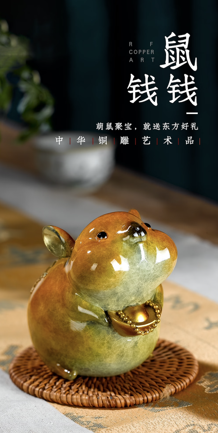全铜招财老鼠摆件客厅可爱呆萌动物工艺品办公室书房桌面创意摆设 小飞鼠(长11宽7高10.5CM)