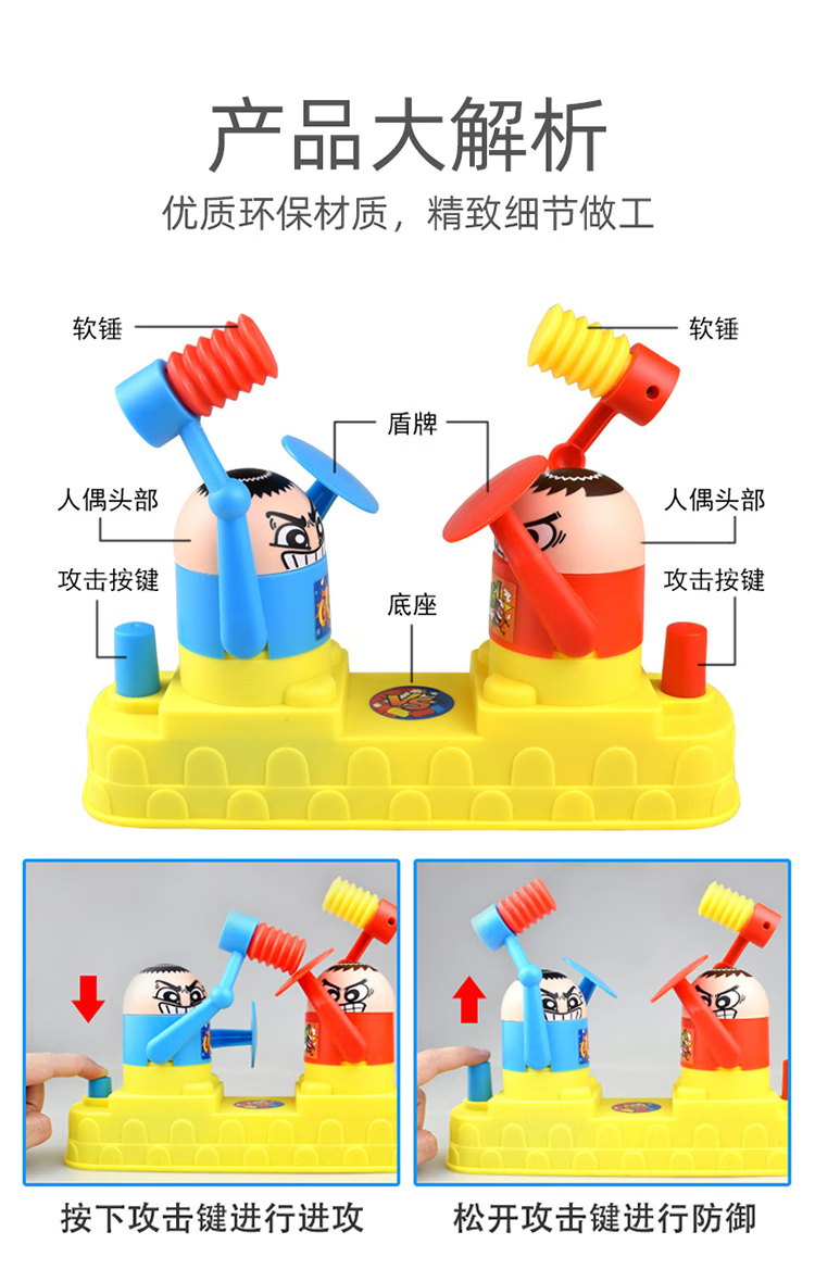 双人攻守对战小人对打机男孩亲子互动儿童桌面游戏玩具对锤互打 对打公仔游戏